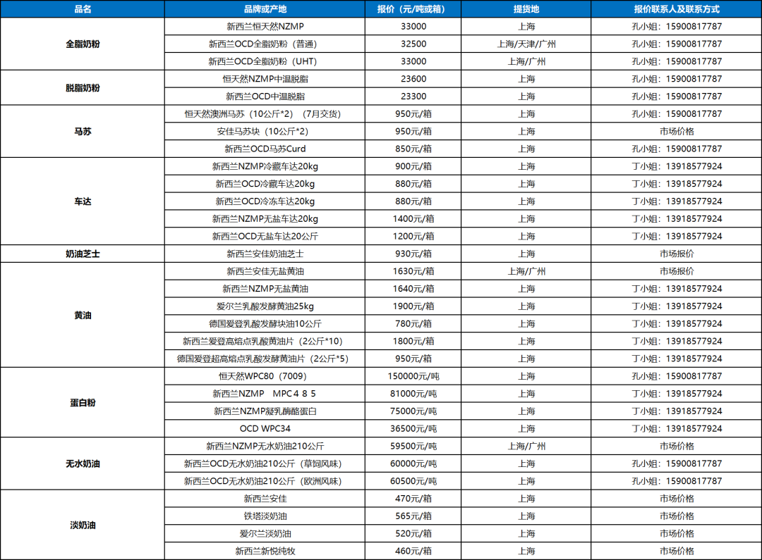 7. 海生人业/产地动态:西洋奶产量和乳固体含量捏续飞腾,导致乳品价钱沿途下滑。